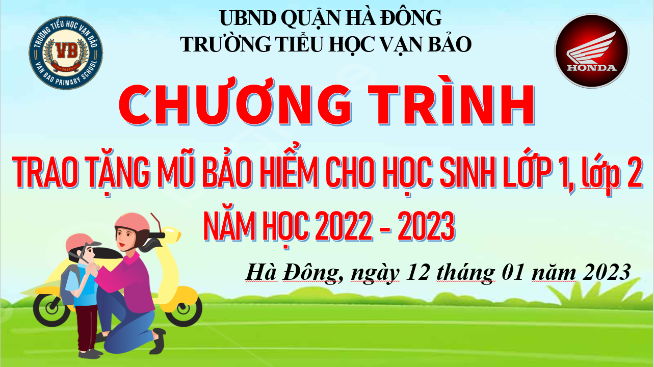 Sáng ngày 12/01 Trường Tiểu học Vạn Bảo đã tổ chức trao quà của công ty Honda Việt Nam cho học sinh lớp 1, lớp 2 trong trường.