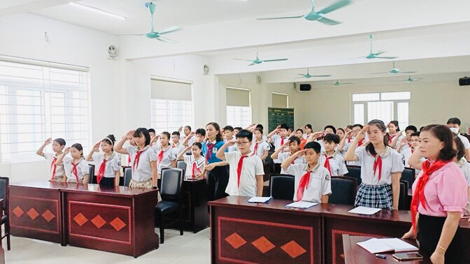 Cô giáo Nguyễn Thị Hương – Phó Hiệu trưởng nhà trường, Cô giáo Mai Thị Chiên - Tổng phụ trách Đội, cô giáo chủ nhiệm lớp và các bạn đội viên tiêu biểu của khối 4 và 5 dự Đại hội