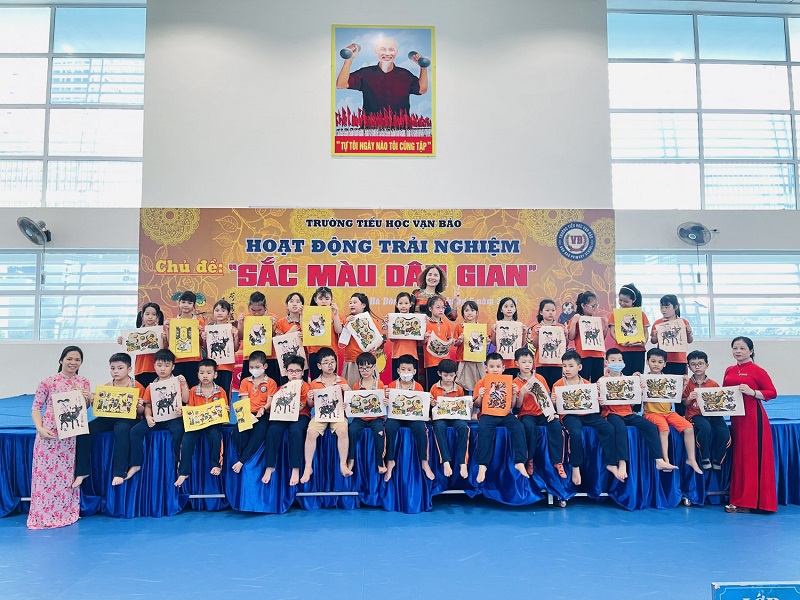 Tranh Đông Hồ - Nét tinh hoa của văn hóa dân gian Việt Nam hấp dẫn, độc đáo ở màu sắc, bố cục, khuôn hình. Với những chất liệu hoàn toàn tự nhiên, tranh Đông Hồ có màu sắc gần gũi, ấm áp rất đặc biệt mà có lẽ chỉ riêng Việt Nam mới có. Tranh Đông Hồ thuộc dòng tranh in từ ván khắc gỗ, do người dân làng Đông Hồ sáng tạo, sản xuất và phát triển thành làng nghề. Đây là dòng tranh gắn bó và thể hiện sinh động xã hội nông nghiệp Việt cổ truyền, cuộc sống lao động của người nông dân bình dị, chất phác, phong tục, tập quán, sinh hoạt của người dân Việt. Nhằm giúp học sinh Trường Tiểu học Vạn Bảo có cơ hội tìm hiểu về văn hóa dân gian của Việt Nam nói chung và dòng tranh dân gian Đông Hồ nói riêng. Hôm nay, các em học sinh khối 1, khối 2 được nghe nghệ nhân nhân dân Nguyễn Đăng Chế giới thiệu những đặc trưng tiêu biểu của dòng tranh dân gian Đông Hồ truyền thống và các bước làm tranh.