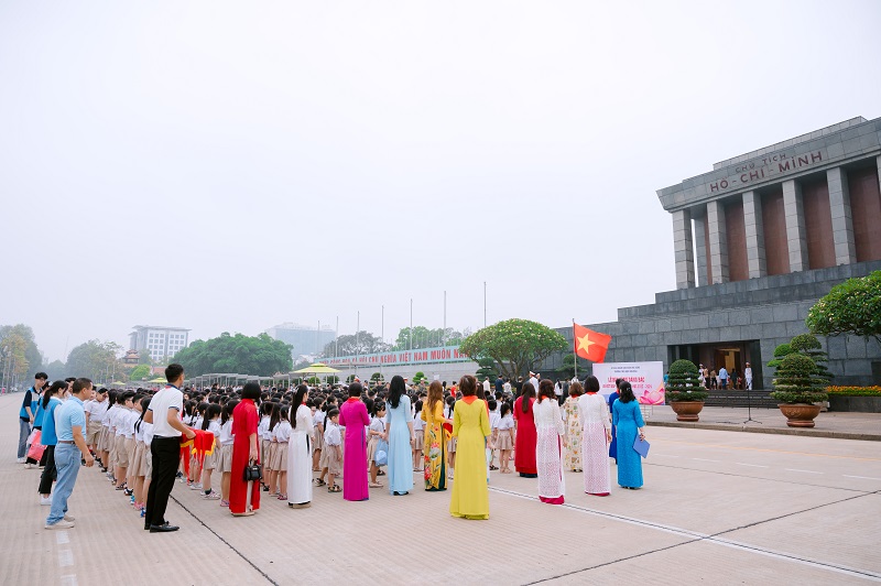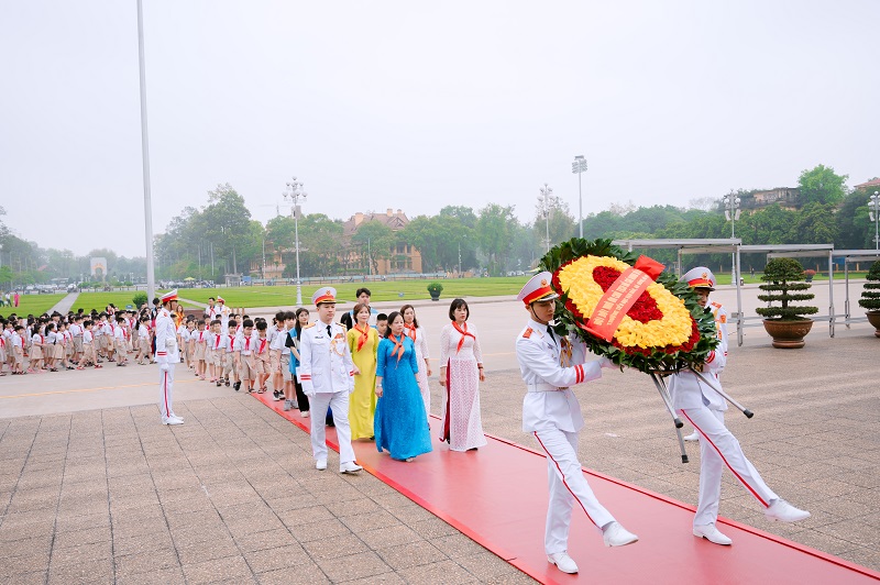 Sau Lễ báo công và kết nạp Đội, thầy trò nhà trường được vào viếng Bác Hồ. Khoảnh khắc được nhìn thấy Bác, được đứng bên Bác thật sự là những giây phút thiêng liêng, xúc động khó tả. Lời Bác dặn lại vang lên trong tâm trí mỗi người, tiếp thêm động lực để thầy trò nhà trường tiếp tục phấn đấu, xứng đáng với niềm tin của Bác.