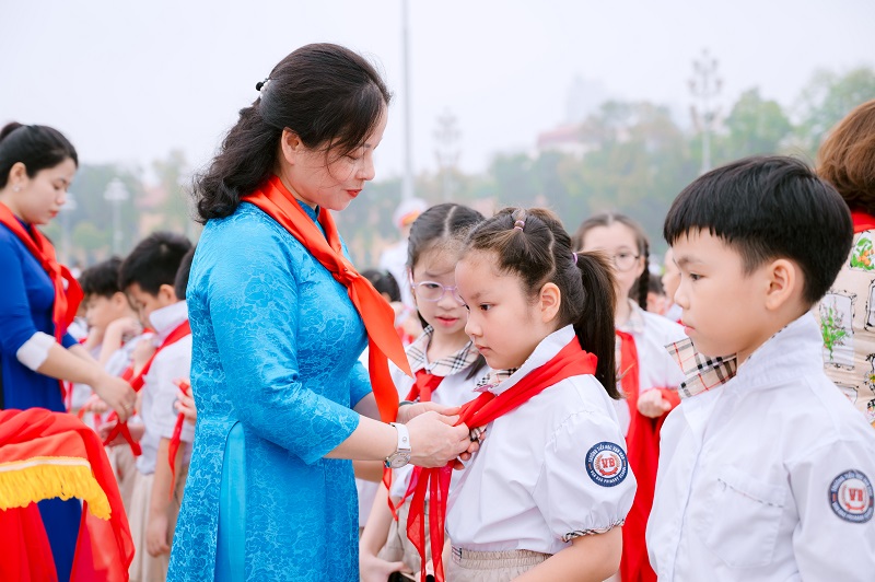 Buổi lễ đặc biệt này còn là kỷ niệm không thể nào quên đối với các em học sinh khối 3, 4, 5 khi được kết nạp vào Đội Thiếu niên Tiền phong Hồ Chí Minh. Thay mặt cho các bạn đội viên mới, em Hà Nguyệt Minh, học sinh lớp 3A2, đã lên phát biểu cảm tưởng và đọc lời hứa đội viên. Lời hứa vang vọng trong không khí trang nghiêm như lời khẳng định về ý chí quyết tâm của các em trong học tập và rèn luyện.