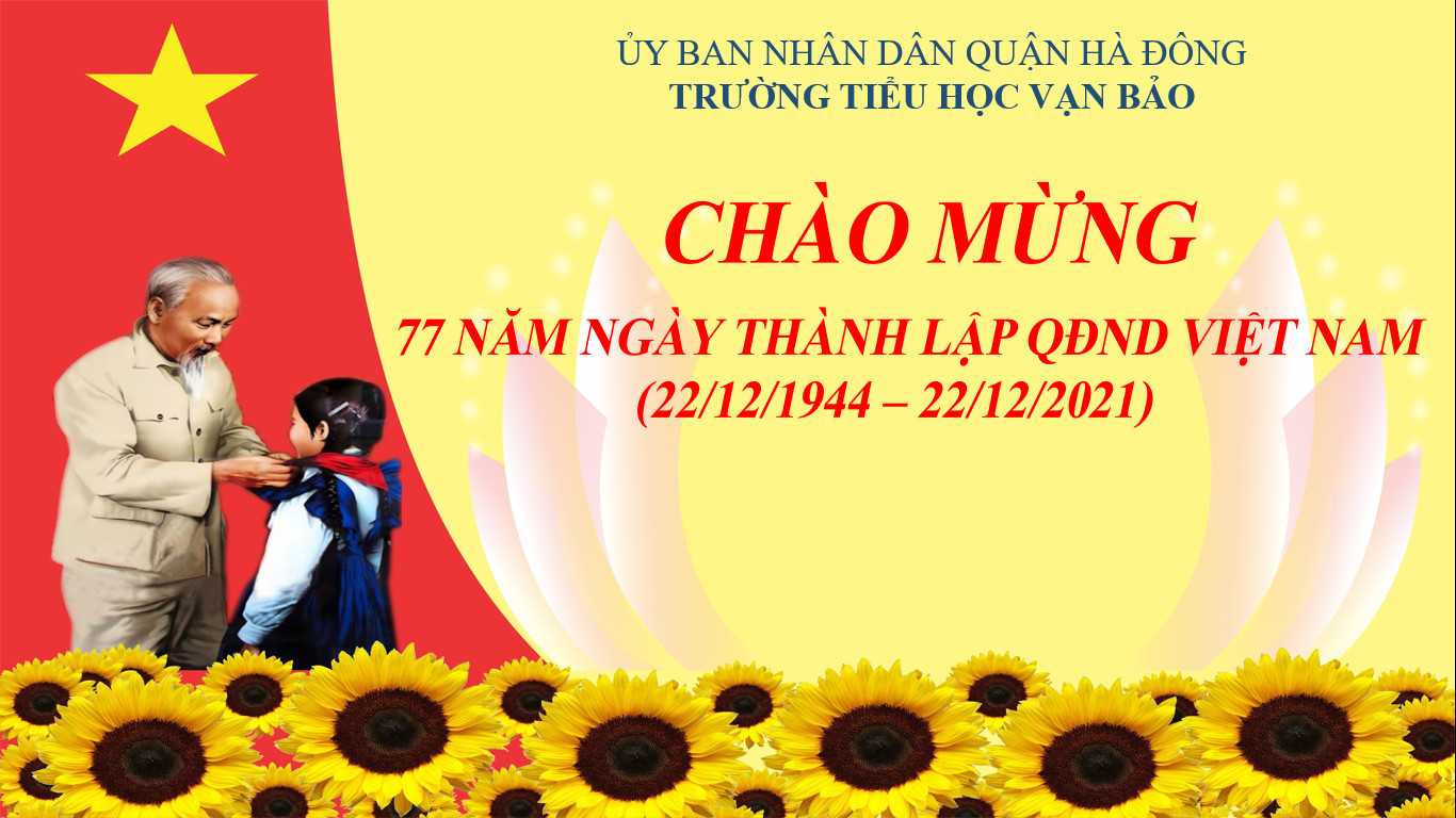 Đảng Nhà nước, nhân dân Việt Nam luôn tự hào và đặt niềm tin vào Quân đội nhân dân Việt Nam, Quân đội anh hùng của một dân tộc anh hùng. Nhân dịp kỷ niệm 77 năm ngày truyền thống Quân đội nhân dân Việt Nam tập thể cán bộ giáo viên, nhân viên, các em học sinh trường TH Vạn Bảo xin được kính chúc các đồng chí mạnh khỏe, bình an, hạnh phúc. Luôn cống hiến hết mình cho sự nghiệp bảo vệ Tổ Quốc.