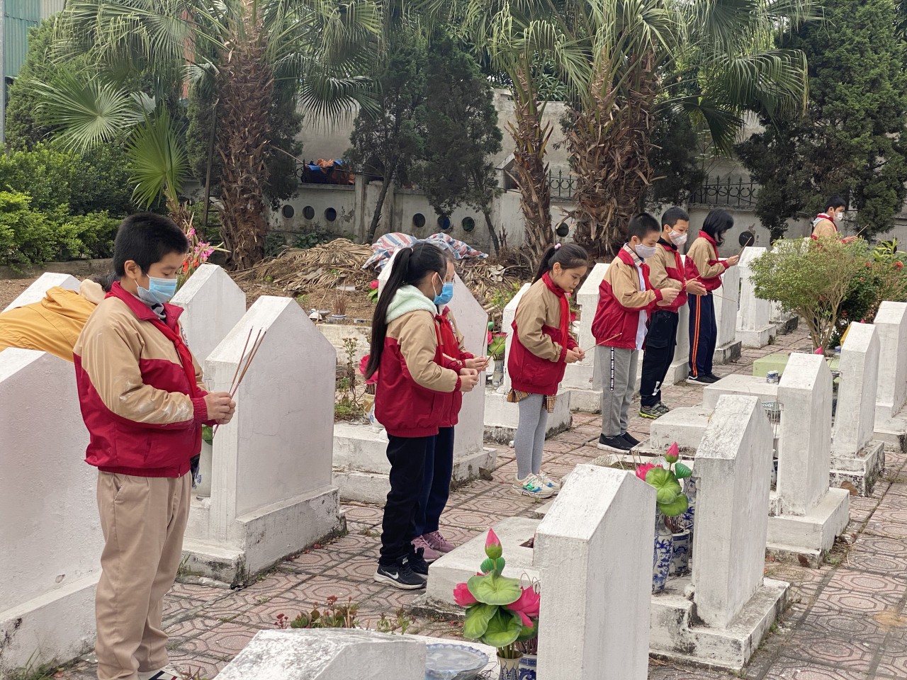 BGH và học sinh dâng hương tại nghĩa trang liệt sỹ