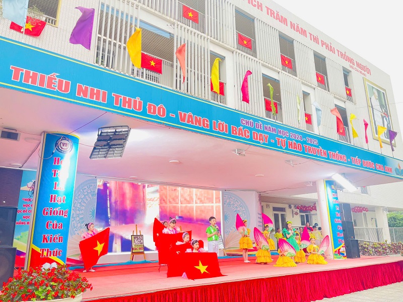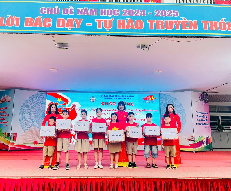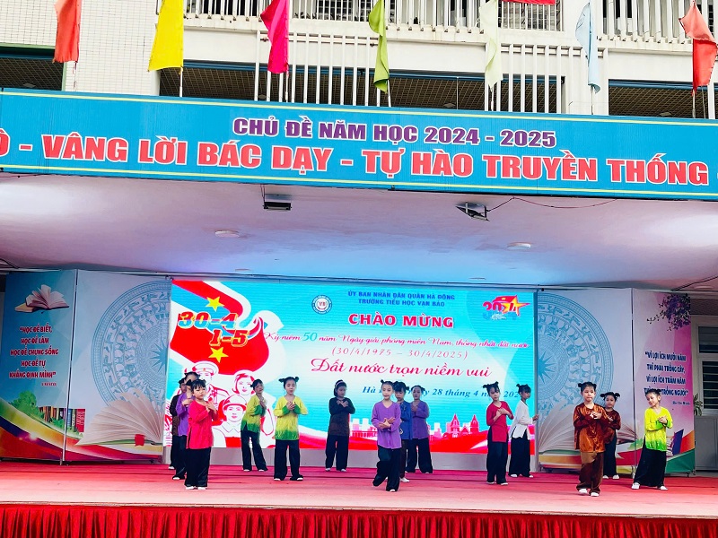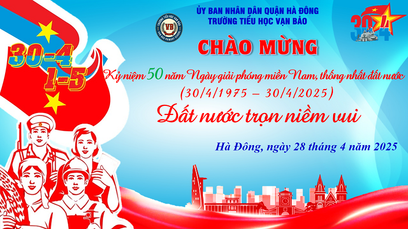 Trong không khí hân hoan của nhân dân cả nước hướng về kỷ niệm ngày Giải phóng Miền Nam 30/4, sáng ngày 28/04/2025, trường Tiểu học Vạn Bảo long trọng tổ chức chương trình kỷ niệm 50 năm ngày Giải phóng Miền Nam, thống nhất đất nước(30/04/1975 - 30/04/2025) với chủ đề: “Đất nước trọn niềm vui”.Chương trình kỷ niệm nhằm ôn lại mốc son chói lọi của quân và dân ta trong chiến thắng lịch sử vào ngày 30/4/1975 khi lá cờ của Mặt trận Dân tộc Giải phóng Miền Nam Việt Nam được cắm trên nóc Dinh Độc Lập, kết thúc oanh liệt cuộc chiến đấu 30 năm dành độc lập, tự do, thống nhất đất nước. Cũng trong sáng cùng ngày, Trường Tiểu học Vạn Bảo kết hợp với Công ty cổ phần sáng tạo nghệ thuật Creartkids tổ chức chương trình giáo dục kỹ năng sống với chủ đề: “Xây dựng trường học hạnh phúc”, giúp các em hiểu được trường học hạnh phúc là nơi học sinh, thầy cô, cán bộ và nhân viên của nhà trường được yêu thương, được tôn trọng, được an toàn, được hiểu, được có giá trị”. Dưới đây là một số hình ảnh: