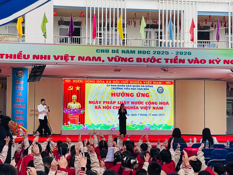 Ngày 5/11/2025, trường Tiểu học Vạn Bảo tổ chức chương trình “Giáo dục lòng biết ơn” nhằm bồi dưỡng cho học sinh tình cảm yêu thương, trân trọng và biết ơn những người xung quanh. Cùng với đó, nhà trường cũng tổ chức hoạt động "Hưởng ứng Ngày Pháp luật nước Cộng hòa xã hội chủ nghĩa Việt Nam", góp phần nâng cao hiểu biết và ý thức chấp hành pháp luật trong học sinh.