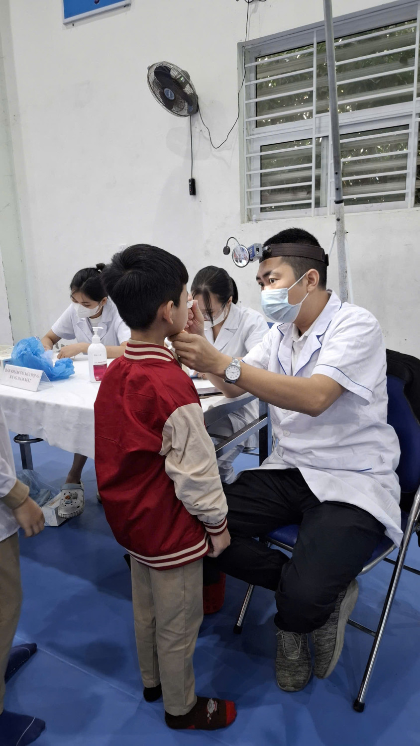 Trong buổi khám, đội ngũ y bác sĩ tiến hành kiểm tra chiều cao, cân nặng, thị lực, răng miệng, tai – mũi – họng, da liễu, tim mạch và các chỉ số phát triển thể chất của từng học sinh. Bên cạnh đó, các em còn được hướng dẫn về dinh dưỡng hợp lý, vệ sinh cá nhân và phòng tránh bệnh thường gặp.