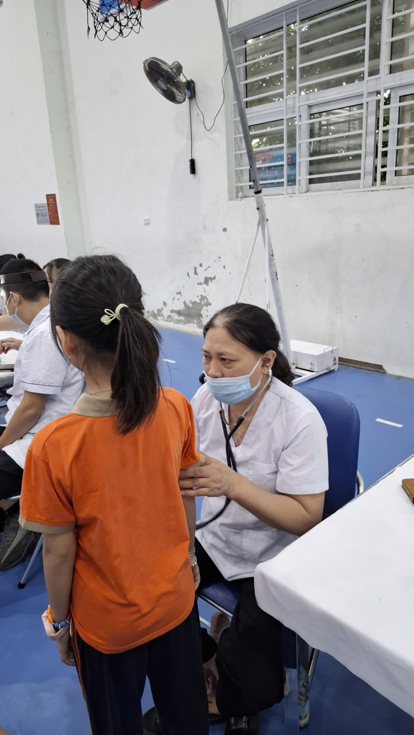 Buổi khám sức khỏe định kỳ là một hoạt động thiết thực, góp phần xây dựng môi trường học đường an toàn – lành mạnh – thân thiện, giúp học sinh phát triển toàn diện cả về thể chất và tinh thần. Một số hình ảnh trong buổi khám sức khỏe: