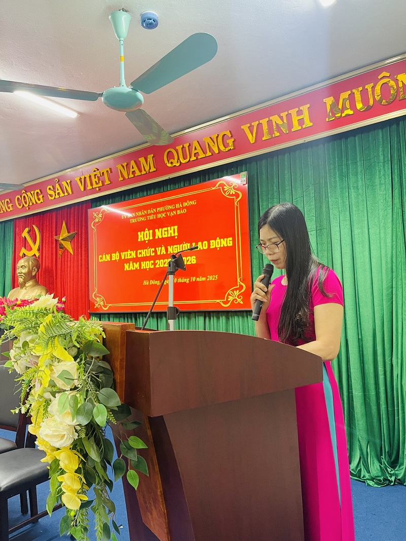 Ngày 10 tháng 10 năm 2025, Trường Tiểu học Vạn Bảo long trọng tổ chức Hội nghị cán bộ, viên chức và người lao động năm học 2025–2026.