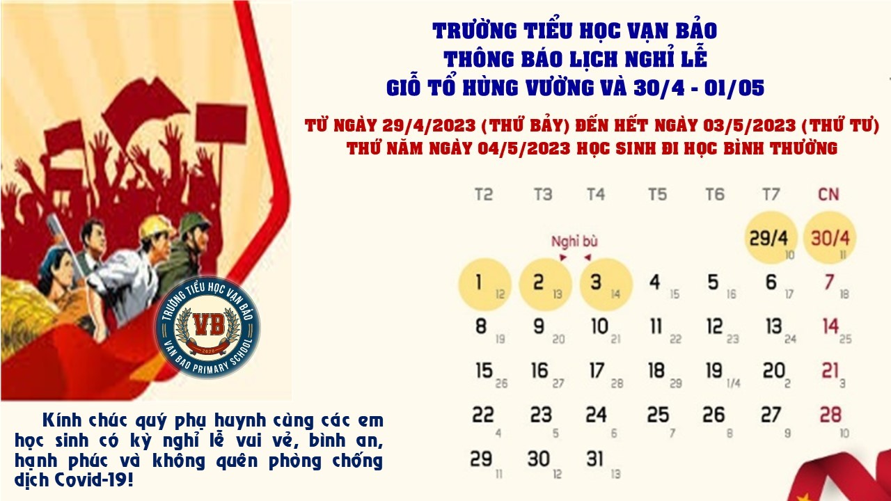 Lịch nghỉ lễ Giổ Tổ Hùng Vương và 30/4-01/5