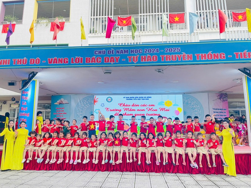 Cũng trong buổi sáng cùng ngày, Trường Tiểu học Vạn Bảo đã đón các em lớp mẫu giáo 5 tuổi Trường Mầm non Hoa Mai sang tham quan và trải nghiệm tại nhà trường.
