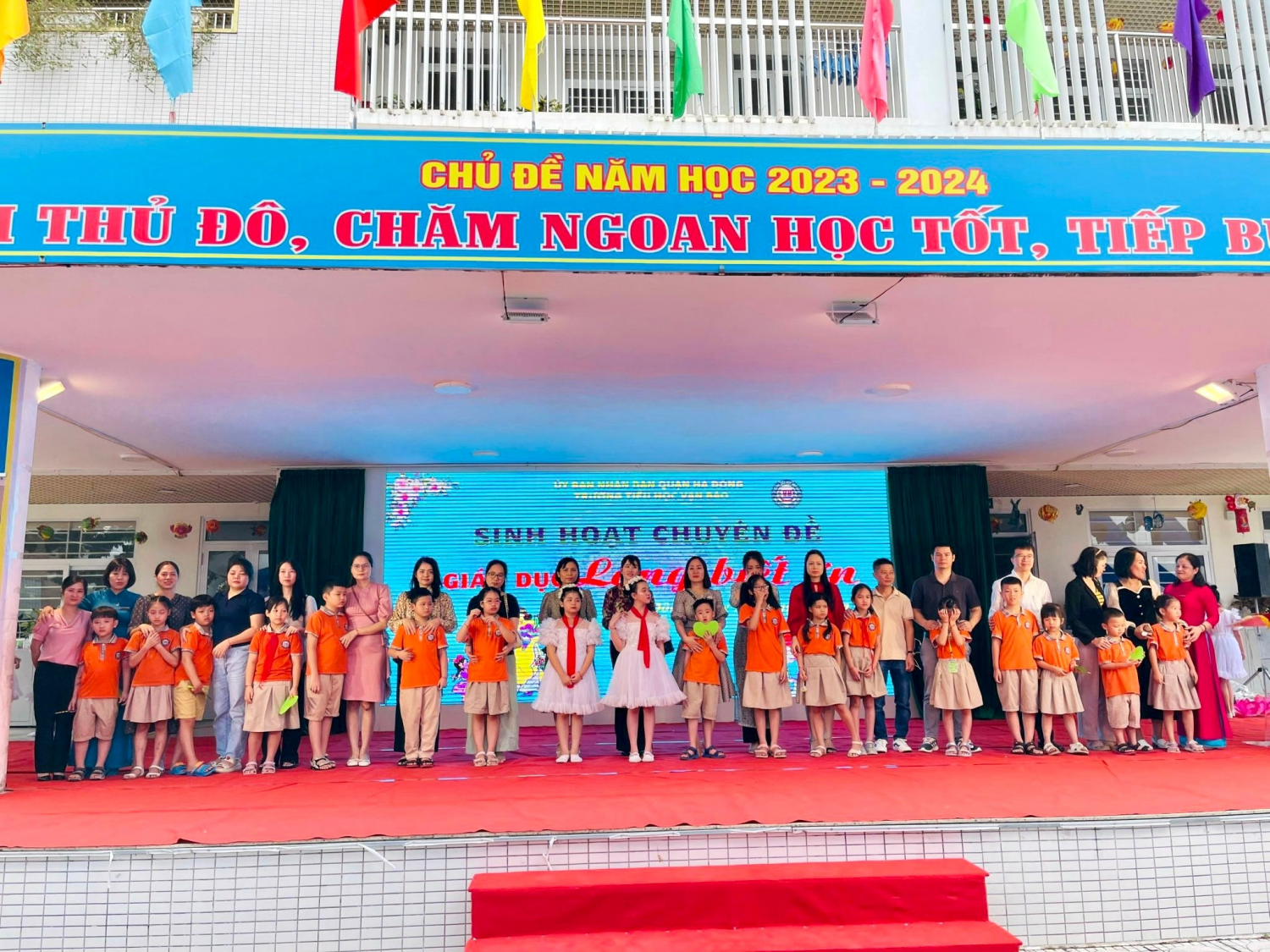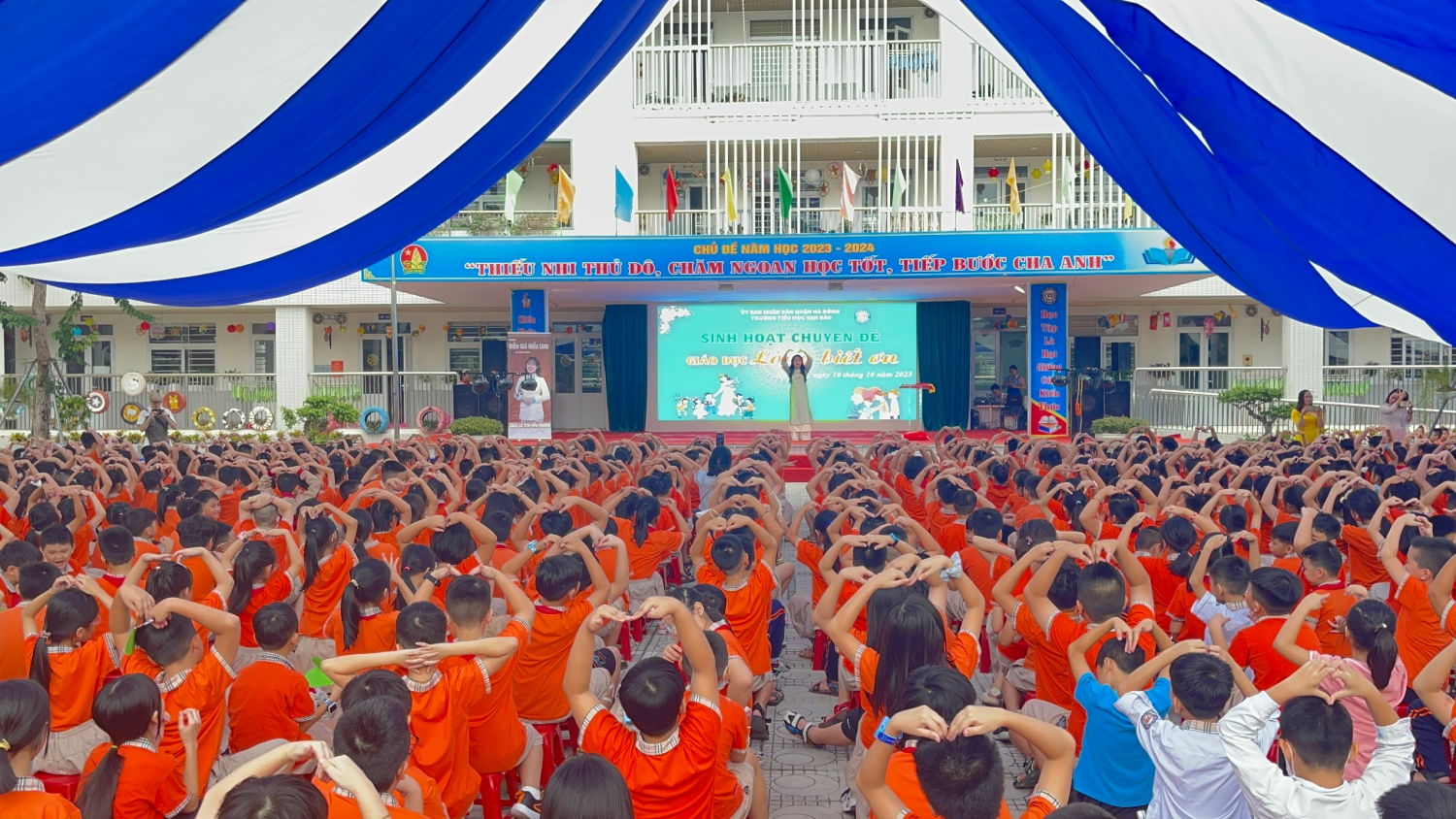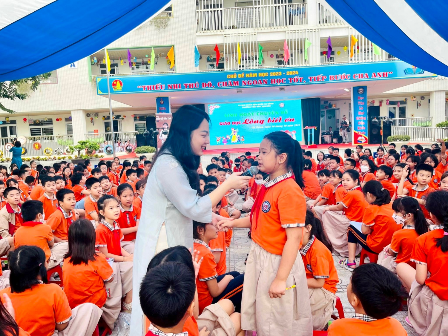 Lòng biết ơn là một trong những phẩm chất đạo đức quý giá của dân tộc ta. Trong cuộc sống, chúng ta không thể thiếu những người đã giúp đỡ, những người đã làm việc vất vả để cho chúng ta có một cuộc sống tốt đẹp. Chính công ơn của những thế hệ đi trước đã giúp ta có được tự do và hạnh phúc ngày hôm nay. Nếu ta quên ơn những người đã giúp đỡ, thì cuộc sống của chúng ta sẽ không thể tốt đẹp hơn được. Lòng biết ơn là điểm khởi đầu để ta trở thành một con người tốt, luôn có những hành động tốt đẹp, đem lại niềm vui cho người khác. Nó cũng là cơ sở bền vững cho những tình cảm tốt đẹp như tình yêu nước, lòng thương dân, hiếu thảo với cha mẹ, kính yêu thầy cô. Và chúng ta cần nhớ lời nhắc nhở quý báu của cha ông ta: "Uống nước nhớ nguồn", "Ăn quả nhớ kẻ trồng cây". Nhân kỉ niệm 69 năm giải phóng Thủ đô 10/10; 93 năm ngày thành lập Hội Liên hiệp Phụ nữ Việt Nam 20/10. Trường Tiểu học Vạn Bảo tổ chức sinh hoạt chuyên đề Giáo dục Lòng biết ơn với sự có mặt của diễn giả Hiểu Linh - chuyên gia kỹ năng sống, tâm lý học. Buổi nói chuyện với chủ đề "Lòng biết ơn" được diễn giả Hiểu Linh dẫn dắt qua những câu chuyện gần gũi như ngày sinh nhật của bạn bè, bố mẹ; chuyện về quá trình các bạn học sinh được sinh ra, lớn lên từng ngày, về những hy sinh thầm lặng của thầy cô giáo, bố mẹ... Bằng giọng kể truyền cảm, cách nêu vấn đề hấp dẫn diễn giả đã dẫn dắt các em học sinh vào những câu chuyện đầy ý nghĩa và xúc động, giúp các em hiểu rõ hơn về ý nghĩa và chủ đề của buổi giao lưu. Diễn giả Hiểu Linh đã kể những câu chuyện nhỏ nhưng thấm đấm cảm xúc và bài học. Các em học sinh được đắm chìm vào câu chuyện đầy xúc động về tình cảm gia đình. Những câu chuyện chân thật, gần gũi của diễn giả Hiểu Linh đã tác động mạnh đến tâm lý từng cá nhân học sinh khiến các em suy nghĩ về trách nhiệm của bản thân đối với gia đình, trách nhiệm của bản thân đối với xã hội hay là sự “soi mình” chính bản thân. Từ đây, các em có những giây phút sâu lắng để suy ngẫm về lòng biết ơn cũng như tình cảm với cha mẹ. Sau hơn một giờ chia sẻ, phần nào đánh thức được những trái tim non trẻ “đã hơn một lần, dù vô tình hay cố ý làm buồn lòng cha mẹ”. Có những giọt nước mắt đã rơi, có những khuôn mặt không giấu được xúc động. Và“Niềm vui sẽ khiến cho ta hạnh phúc nhưng nước mắt mới khiến ta trưởng thành”. Những điều hằng ngày tưởng chừng như đơn giản, nhưng hôm nay các con có ý thức biết ơn sâu sắc, biết ơn cuộc sống mà mẹ cha trao cho mình, biết ơn từng miếng ăn giấc ngủ mà mẹ cha mang đến, biết ơn lời dạy bảo hằng ngày …. biết ơn cả những tảo tần vất vả của mẹ cha để mong mang cho con những gì tốt đẹp nhất. Qua buổi giáo dục kỹ năng sống này đã giúp cho học sinh hiểu được cách bày tỏ tình cảm và sự biết ơn của mình với ông bà, cha mẹ, thầy cô, … Hiểu được sự vất vả, hi sinh mà cha mẹ, thầy cô, … đã dành cho mình. Hiểu được những gì mình chưa làm được, hay đã làm (bằng lời nói, hành động, việc làm làm cụ thể) nhưng chưa đúng với Cha mẹ, Thầy cô, … Điều đó thể hiện qua cảm xúc của học trò, qua những giọt nước mắt chảy dài trên má của các em trong suốt buổi giáo dục, qua những cái ôm thật chặt của các em học sinh với ánh mắt đẫm lệ dành cho cha mẹ và thầy cô giáo của mình. Buổi ngoại khóa giáo dục kỹ năng sống đã giúp các em học sinh của nhà trường biết quan tâm, giúp đỡ, lòng biết ơn, tự giác và sự hi sinh với hy vọng các em sẽ cố gắng học tập, cố gắng vâng lời ông bà, cha mẹ, thầy cô và không từ bỏ những ước mơ, hoài bão của mình. Có thể nói, cùng với tri thức, bồi dưỡng lòng biết ơn chính là hành trang để các em học sinh tu dưỡng, rèn luyện, vững bước trưởng thành, để mai này các em sẽ trở thành những công dân có nhân cách, phẩm chất đạo đức tốt, có ích cho xã hội. Dưới đây là một số hình ảnh của hoạt động ngoại khoá: