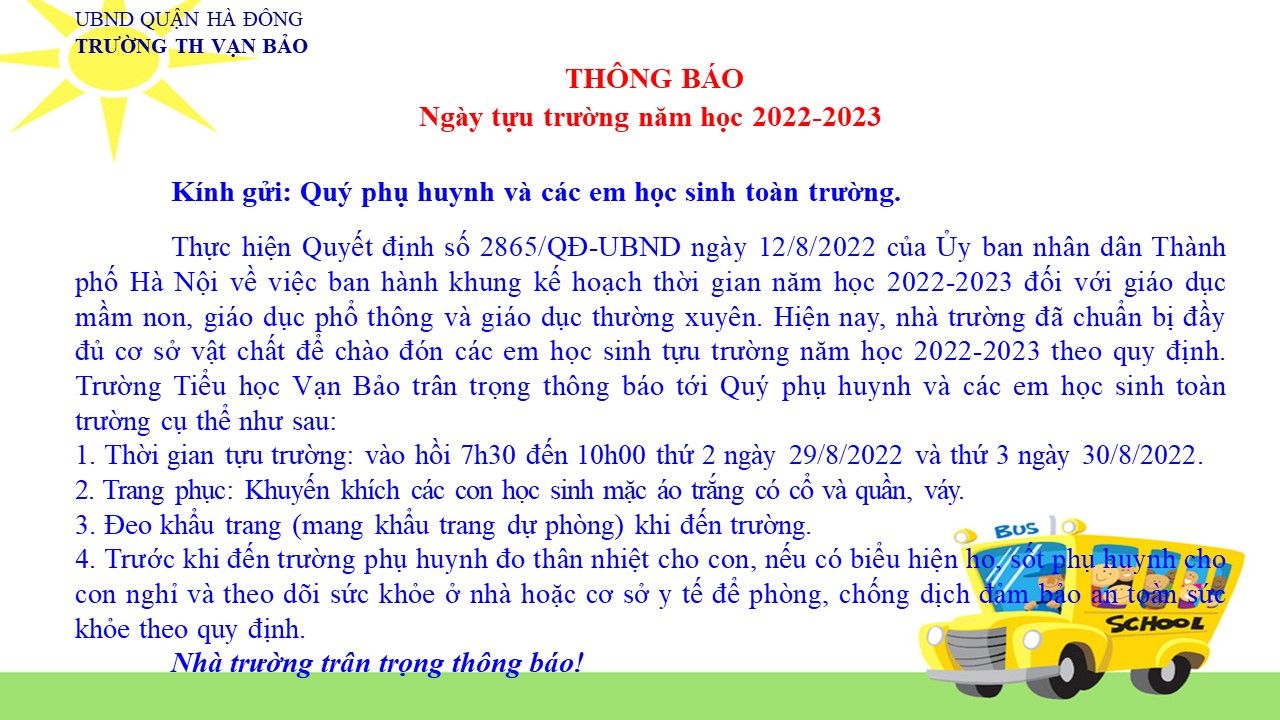 Thông báo ngày tựu trường năm học 2022 - 2023