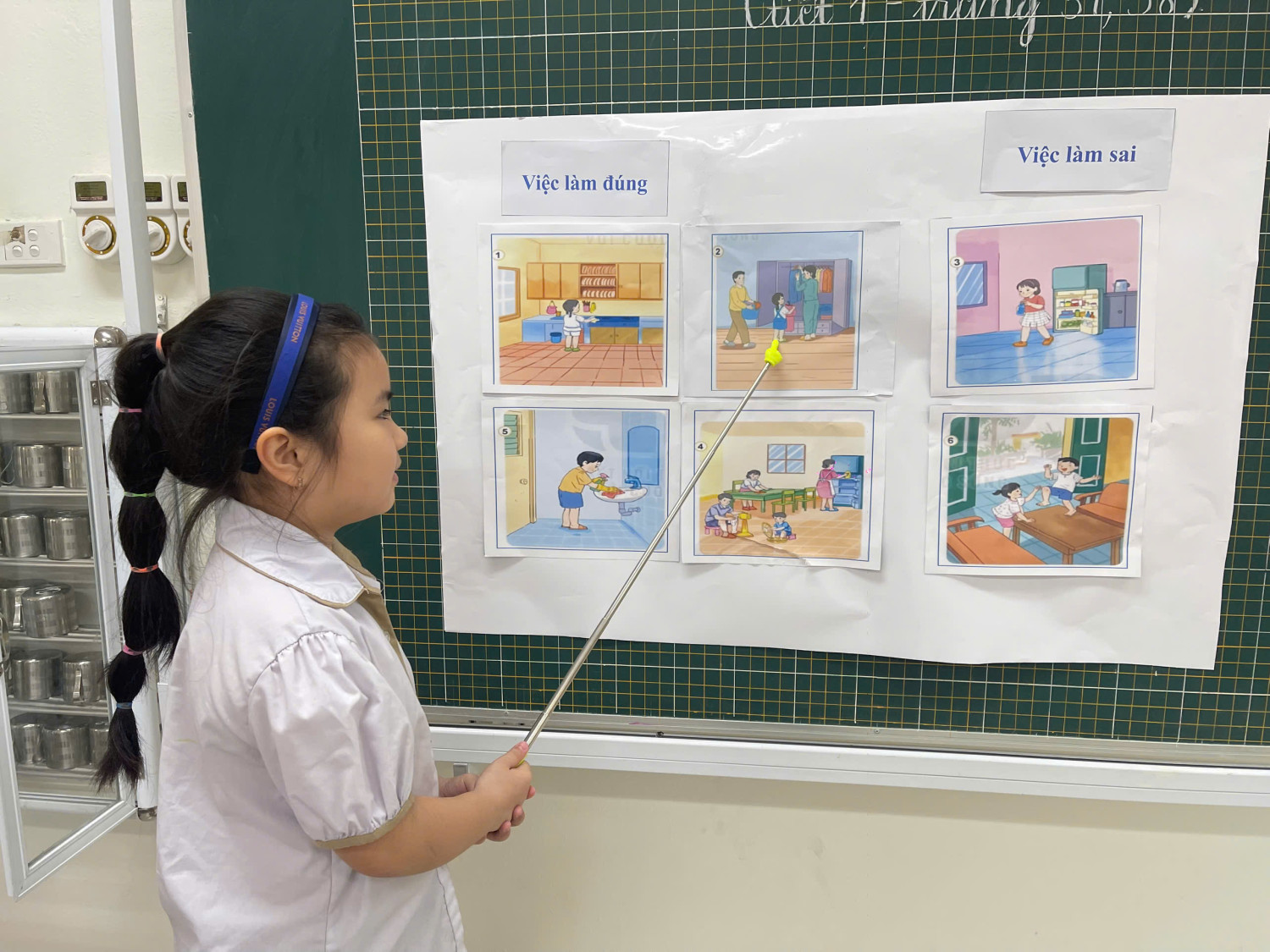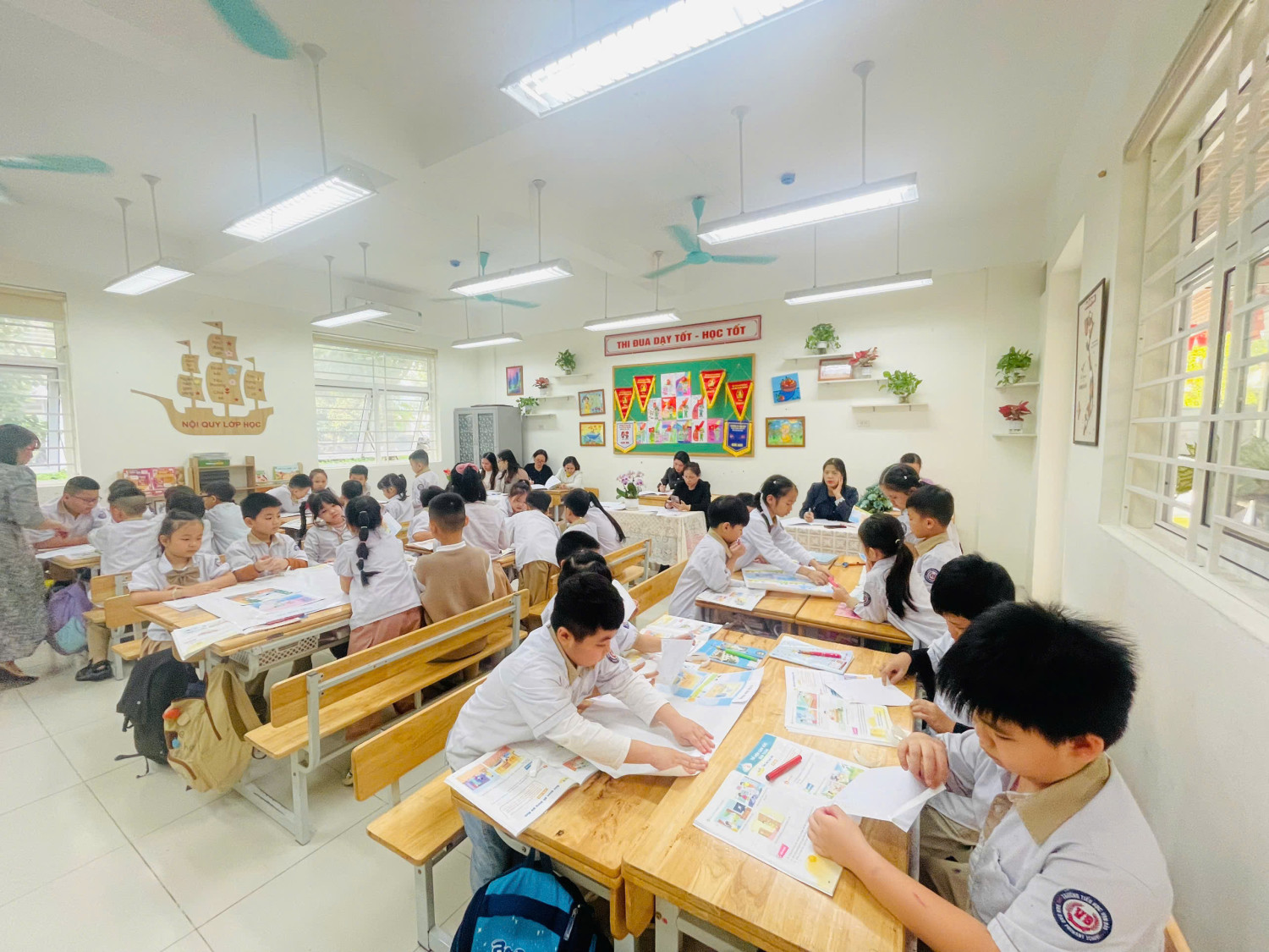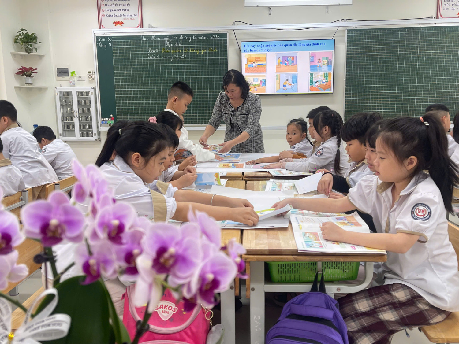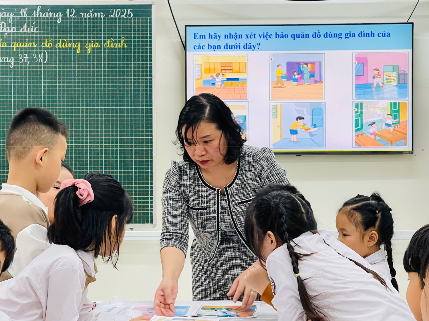 Hôm nay, cô trò lớp 2A1 tổ chức tiết dạy chuyên đề môn Đạo đức, bài 8 “Bảo quản đồ dùng trong gia đình”, đến dự giờ với tiết chuyên đề có các cô giáo trong Ban Giám hiệu và giáo viên tổ 2. Đây là hoạt động chuyên môn thường xuyên của nhà trường, nhằm tạo điều kiện cho giáo viên trao đổi, chia sẻ kinh nghiệm và học hỏi lẫn nhau. Trong tiết dạy, giáo viên đã vận dụng linh hoạt các phương pháp và hình thức tổ chức dạy học, góp phần phát triển năng lực cho học sinh. Học sinh tham gia học tập tích cực, sôi nổi, mạnh dạn trao đổi, trình bày ý kiến và nêu được nhiều việc làm cụ thể để giữ gìn, bảo vệ đồ dùng trong gia đình.