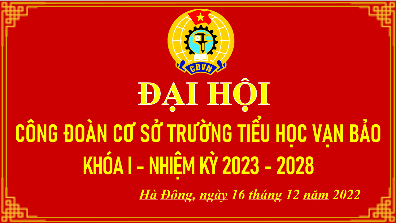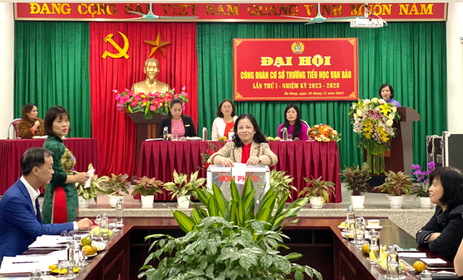 Chiều ngày 16/12/2022, Công đoàn Trường Tiểu học Vạn Bảo - Hà Đông - Hà Nội đã tổ chức thành công Đại hội Công đoàn lần thứ I, nhiệm kỳ 2023 - 2028. Đến dự và chỉ đạo Đại hội có đồng chí Đào Quang Huy, Phó Chủ tịch Liên đoàn Lao động quận Hà Đông.