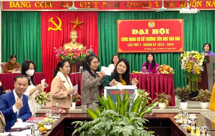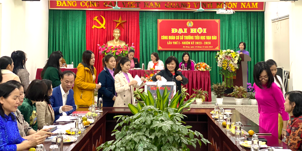 Với tinh thần tập trung, dân chủ và trách nhiệm, nghiêm túc, khoa học, đoàn kết, Đại hội Công đoàn Trường Tiểu học Vạn Bảo đã thành công tốt đẹp. Đại hội cũng bầu Ban Chấp hành Công đoàn Trường Tiểu học Vạn Bảo khóa I, nhiệm kỳ 2023 - 2028 gồm 5 đồng chí, trong đó, đồng chí Nguyễn Thị Hương, Phó Hiệu trưởng nhà trường đã được bầu làm Chủ tịch Công đoàn.