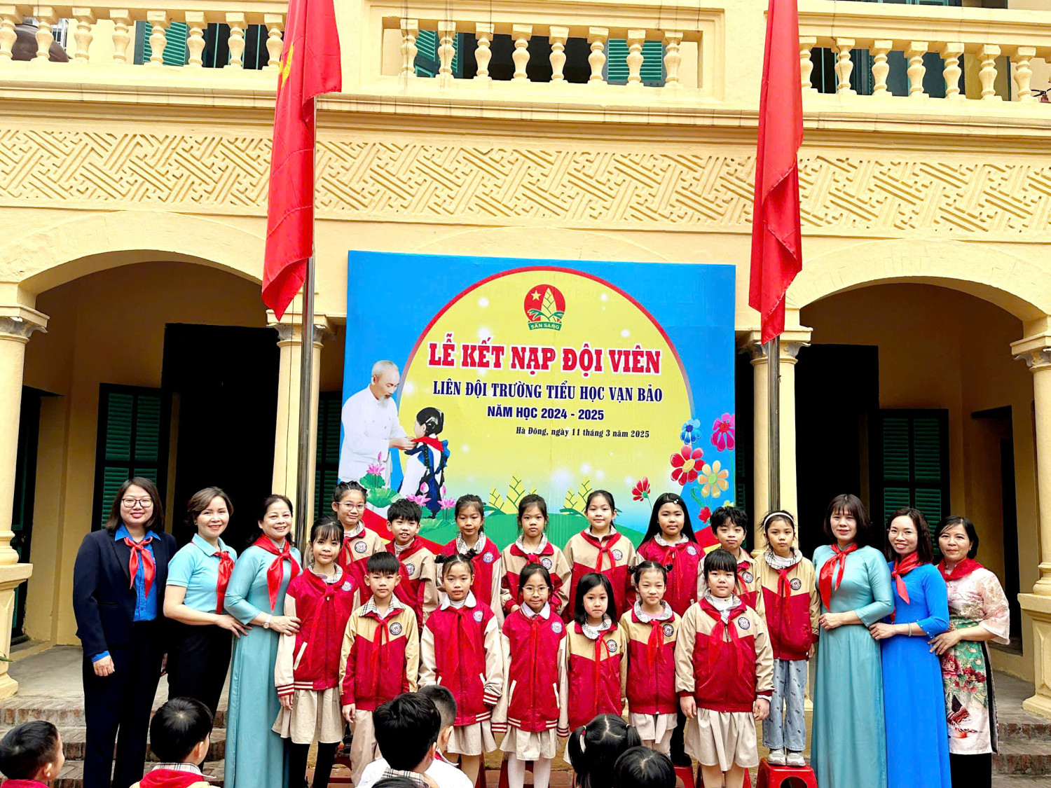 Thực hiện chương trình công tác Đội và phong trào thiếu nhi năm học 2024 – 2025, ngày 11/3/2025, tại Nhà lưu niệm Bác Hồ phường Vạn Phúc – nơi Bác Hồ viết Lời kêu gọi toàn quốc kháng chiến ngày 19/12/1946, Các chi đội thuộc Liên đội trường Tiểu học Vạn Bảo đã tổ chức thành công Lễ kết nạp đội viên cho 196 em nhi đồng lớp 3, đây là hoạt động có ý nghĩa giáo dục truyền thống, bồi dưỡng lý tưởng cách mạng, tạo động lực mạnh mẽ cho đội viên phấn đấu và rèn luyện, nhân dịp chào mừng kỷ niệm 94 năm Ngày thành lập Đoàn TNCS Hồ Chí Minh (26/3/1931 - 26/3/2025) và chuỗi hoạt động chào mừng kỷ niệm 50 năm Ngày Giải phóng Miền Nam, thống nhất đất nước (30/4/1975 - 30/4/2025).