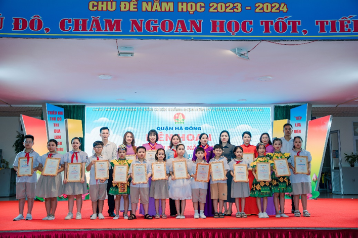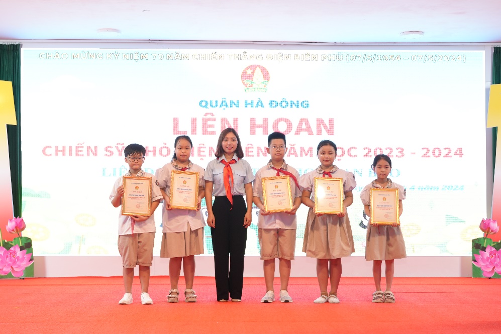 Trong khuôn khổ Liên hoan, Hội đồng Đội Quận Hà Đông tuyên dương, khen thưởng các tập thể, cá nhân có thành tích xuất sắc trong tổ chức mô hình điểm tại Liên đội trường Tiểu học Vạn Bảo.