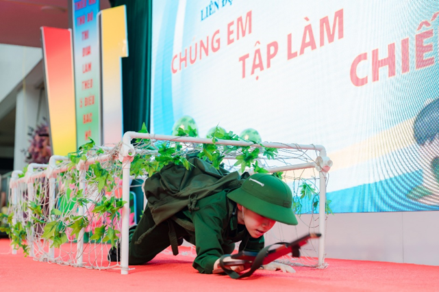 Hóa thân thành những chú bộ đội tham gia trò chơi “Chúng em tập làm chiến sĩ”